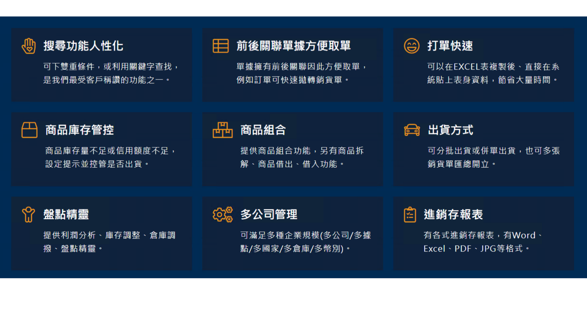 - 打單快速,可在EXCEL複製、在系統上貼上表身資料。